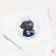 Aloja su ducha de bebé con amigos y familia para celebrar la llegada de su niño recién nacido con este adorable cachorro negro de laboratorio pegatinas de ducha de bebé, invitaciones, accesorios de fiesta y regalos. Un labrador negro dulce recuperador cachorro bebé con corbata azul. Este diseño sencillo y minimalista es perfecto para cualquier tema de cachorro con ducha de bebé. DERECHOS RESERVADOS © 2020 Judy Burrows, Black Dog Art - Todos los derechos reservados. Black Lab Blue Boy Baby Shower Gracias Pegatina de Ronda Clásica