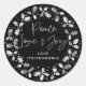 Ordenar como pegatina cuadrado o redondo. Hojas blancas y bayas dispersas imprimidas a mano forman una corona elegante alrededor de tu texto. Todo el texto, aparte del tipo de letra del guión, es totalmente editable. En esta colección hay disponibles otros colores y elementos de coordinación.