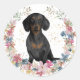 Pegatina Redonda Black Tan Dachshund Spring Flowers Wreath