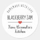 Simple pegatina "casero con amor" que presenta "mermelada de mora negra" con una fuente negra en un simple fondo blanco adornado con un lindo corazón rojo. Texto personalizado.
