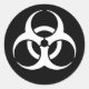Pegatina Redonda blanco de riesgo biológico sobre negro