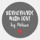 Un pegatina "casero con amor" personalizado con un fondo de color gris carbón. Hazlo tuyo añadiendo tu propio nombre. Un toque de bonito para todos tus regalos hechos a mano. Diseñado para ti por Blackberry Boulevard.