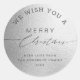 Pegatina Redonda Blanco Plateado Hoja Chic Letra Merry Christmas