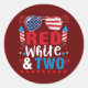 Pegatina Redonda Blanco Rojo Dos Graciosos Niños Del Segundo Cumple
