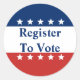 Animar a los ciudadanos a registrarse para votar con estos pegatinas rojos blancos y azules. Las palabras 'Regístrate para votar' están en el centro en texto azul sobre una franja blanca. Una franja azul está encima del texto mientras que una franja roja está debajo del texto. Una fila de estrellas blancas está encima y debajo del texto.