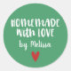 Un pegatina "casero con amor" personalizado con un fondo verde. Hazlo tuyo añadiendo tu propio nombre. Un toque de bonito para todos tus regalos hechos a mano. Diseñado para ti por Blackberry Boulevard.