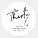 Este sencillo personalizado gracias pegatina añadirá un detalle elegante a su día especial. Este diseño presenta letras de guiones modernas "Thirty" con texto personalizado. En mi tienda BaraBomDesign hay disponibles invitaciones para cumplir 30 años y suministros para fiestas.