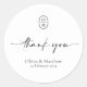 Elegante y chic con estética minimalista. Esta encantadora etiqueta de agradecimiento de boda minimalista presenta un conjunto contemporáneo de fuentes y monograma de pareja de boda contra un fondo blanco crujiente.