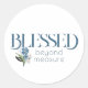 Pegatina Redonda Blessed Beyond Measure Blue Abstract Floral