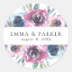 Selle sus sobres de invitación o favores con nuestros stickers de boda personalizados de Midnight Blooms. Los pegatinas personalizados muestran sus nombres y fecha boda enmarcada por flores de color morado, azul y malva con hojas verdes. Diseñado para coordinar con nuestra colección de bodas de Blooms de Medianoche.