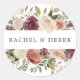 Selle sus sobres de invitación o favores con estos elegantes stickers de boda florales con sus nombres enmarcados en la parte superior y inferior por exuberantes rosas de acuarela y mamáes en ricos tonos de otoño de borgoña, marsala, rosa y marfil, con hojas y follaje de color verde oscuro. Diseñado para coordinar con nuestra colección de bodas florales Rustic Bloom para bodas en otoño o invierno.
