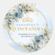 Pegatina Redonda Blooming Dusty Blue Gold Greenery 15th Birthday
