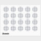 Blue and white geometric pattern on a circular sticker, featuring crosses and squares. Below, a sheet displays multiple identical stickers. Simple and modern.