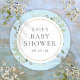 Pegatina Redonda Blue Baby Boy Shower Watercolor Greenery Leaves