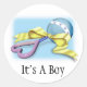 Pegatina Redonda Blue Baby Rattle Es un chico