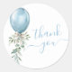 Blue balloon bow greenery baby shower thank you classic round sticker.