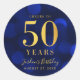 Pegatina Redonda Blue Bokeh Gold Cheers a 50 años cumpleaños