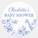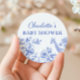 Blue Boy Baby Shower Safari Toile de Jouy Pegatina redondo clásico