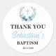 Celebrate the joyous occasion of your baby boy's baptism with our classic round Baby Boy Baptism Stickers, adorned with elegant blue letters and a delicate blue cross design. These stickers add a touch of grace and faith to your celebration, perfect for embellishing invitations, favors, or decorations.