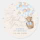 Pegatina Redonda Blue Brown Teddy Bear Hot Air Balloon Birday Boy