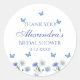 Mejora tu celebración de jardín de primavera con este pegatina de agradecimiento personalizado, elegante y femenino, perfecto para tus favores de ducha de flores silvestres. Este delicado diseño floral presenta una gran variedad de elementos botánicos y mariposas exquisitas, con un fondo blanco resplandeciente. Las flores azules polvorientas se entremezclan con la vegetación exuberante, creando un aspecto impresionante y caprichoso que encarna la belleza de un jardín primaveral. Estos pegatinas le añadirán un toque de sofisticación y encanto a su Fiesta Butterfly Bridal Shower, Lunch o Picnic, convirtiéndolos en una manera ideal de agradecer a sus invitados por celebrar con usted.