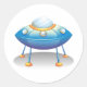 Pegatina Redonda Blue Cartoon UFO Spaceship Fun Sci-Fi