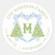 Pegatina Redonda Blue Chinoiserie Escudo Monograma de árbol de Navi