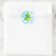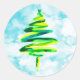 Pegatina Redonda Blue Christmas Tree acuarela Classic