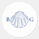 Pegatina Redonda Blue Clam Seashells Coastal Seaside Beach Wedding