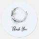 Gracias pegatinas con un ilustracion místico. Luna de media luna azul oscuro con un elegante contorno de círculo delgado y flores blancas a lo largo de sus bordes.