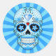 El cráneo de azúcar de este Día de los Muertos tiene un diamante grande en medio de la frente. En el centro de los ojos negros aparecen estrellas de cinco puntos rodeadas de simples pedales de flores. Las telarañas decoran ambos lados del cráneo con líneas giratorias que aparecen a lo largo del patrón. Los gruesos rayos de luz se extienden en todas las direcciones que emanan de detrás del cráneo. Este cráneo de azúcar tradicional es un hermoso y elegante patrón del Día de los Muertos.