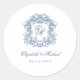 Pegatina Redonda Blue Elegant Vintage Monogram Crest Wedding