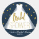 Pegatina Redonda Blue & Gold Bridal Shower Boda Vestido Confetti
