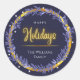 Pegatina Redonda Blue Gold Cute Felices Fiestas Feliz Navidad