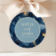 Pegatina Redonda Blue Gold Elegant Celestial Starry Sky Wedding