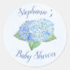 Pegatina Redonda Blue Hydrangea Baby Shower Personalizado