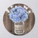 Pegatina Redonda Blue Hydrangea Floral Jar Rustic Wood Boda