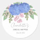 Pegatina Redonda Blue Hydrangea Modern Floral Bridal Shower