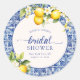Pegatina Redonda Blue Mediterranean Lemons Bridal Shower
