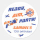 Pegatina Redonda Blue, Naranja Dart War Birday Party, Any Age