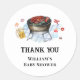 Baby Q Baby Shower tema, Cute retro vintage color de agua azul plaid gingham backyard barbacoa al aire libre. rústico estilo moderno invitación a la ducha bebé, decoración de fiesta de ducha de bebé, colección de suministros de fiesta. Puede usar la palabra personalizar a través de "personalizar la plantilla".
