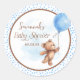 Pegatina Redonda Blue Polka Dot Teddy Bear Balloon Baby Shower