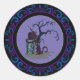 Pegatina Redonda Blue Purple Black Cats Tombstone Tree Halloween