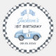 Blue Race Car Boy Primer cumpleaños Pegatina redondo clásico