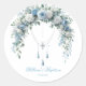 Pegatina Redonda Blue Rose & Silver Cross Baptism Favor Sticker