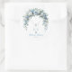 Add a touch of boutique elegance to your party favors with these Blue Rose & Silver Cross Baptism Favor Stickers. Each round label features a breathtaking overhead arch of watercolor roses in serene shades of dusty blue and crisp white, intertwined with soft eucalyptus greenery. Suspended from the floral arrangement is a sophisticated silver filigree cross, accented by shimmering metallic chains and tassels for a refined, modern aesthetic.