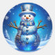 Pegatina Redonda Blue Snowman Snowflakes Holiday Sticker