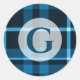 Pegatina Redonda Blue Tartan Plaid Monogrammed