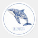 Pegatina Redonda Blue Toile Floral Beach Dolphin Personalizado