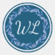 Pegatina Redonda Blue Watercolor Floral Wreath Monogramed